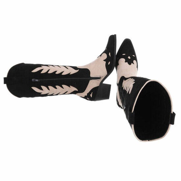 Hoge dames cowboylaarzen met zwart en beige details
