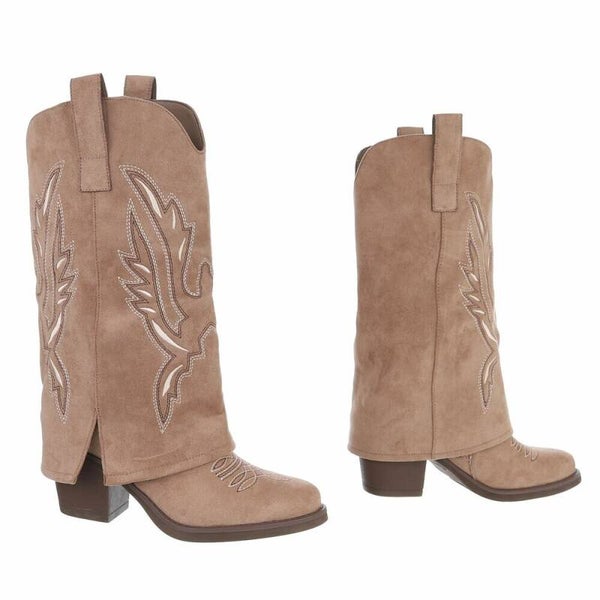 De Sahara Split Western Boot valt op door zijn prachtige suède-look, verfijnde borduursels en het moderne split-shaft design. De comfortabele hak en spitse neus maken deze laars perfect voor zowel dagelijkse outfits als eye-catching looks.