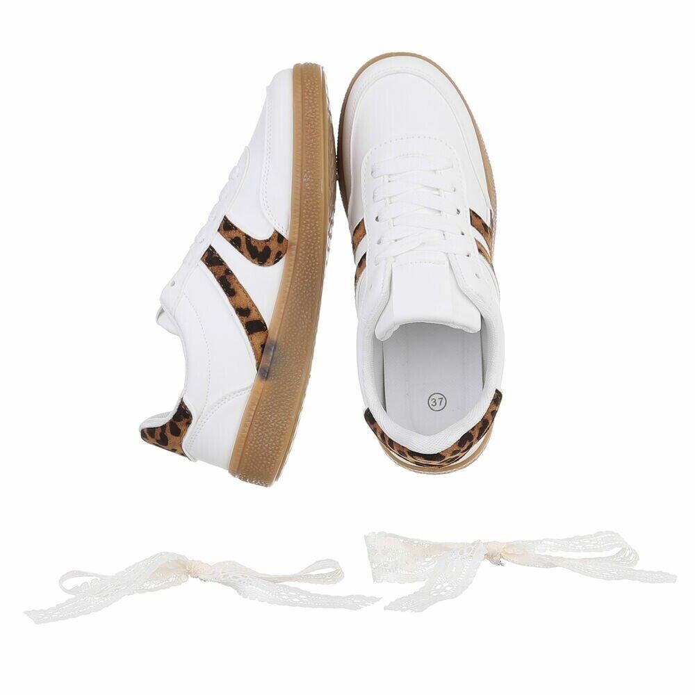 De Mila sneaker is dé perfecte mix van clean en opvallend. De frisse witte basis krijgt een trendy twist door de leopard details aan de zijkant en hak. De sierlijke veters met kantaccent zorgen voor een vrouwelijke en unieke uitstraling, terwijl de gumkleurige zool de sneaker een moderne, casual touch geeft.