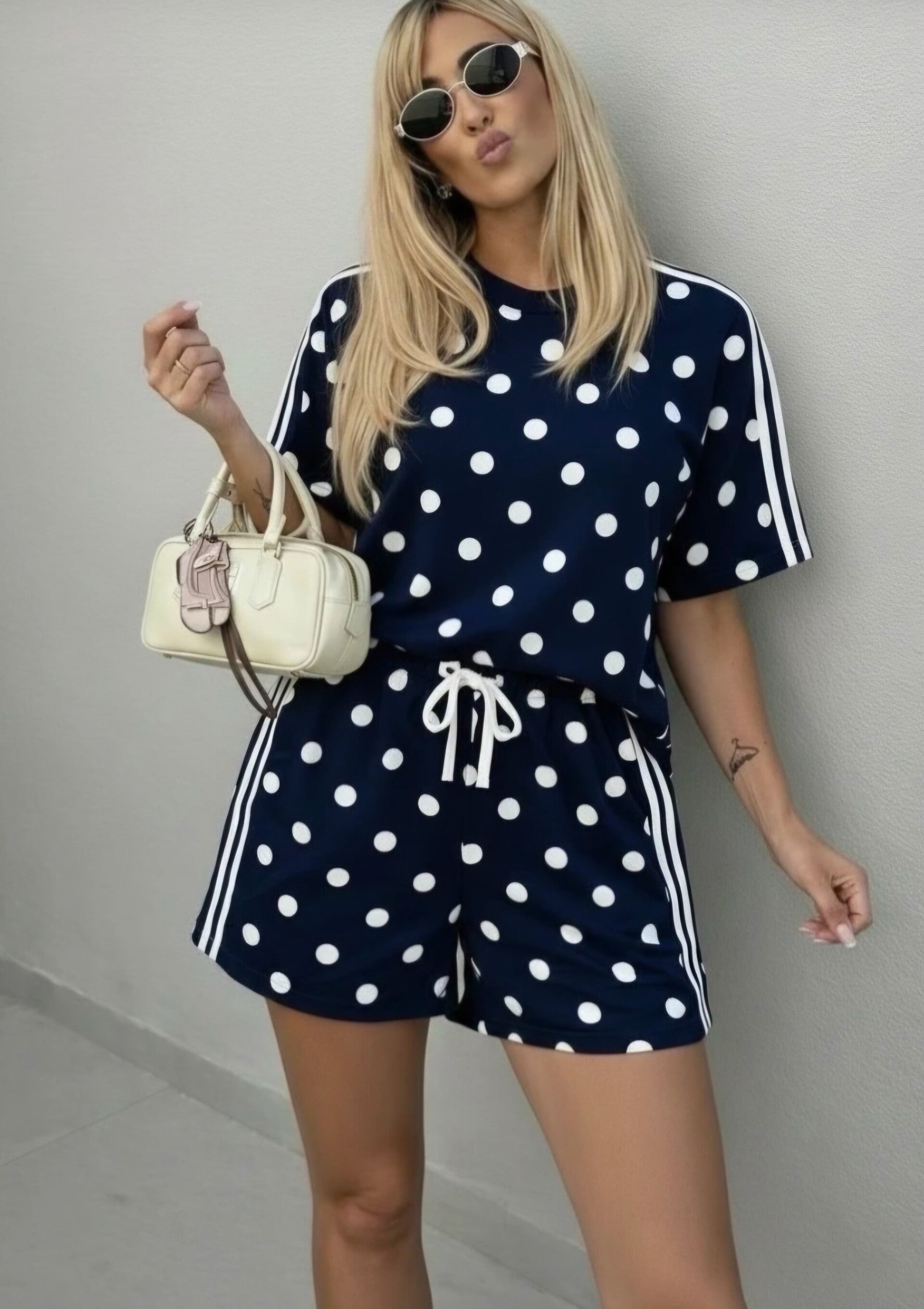Leuke set met speelse stippenprint. De short heeft banddetails en zit heerlijk comfortabel. Ideaal voor warme dagen.